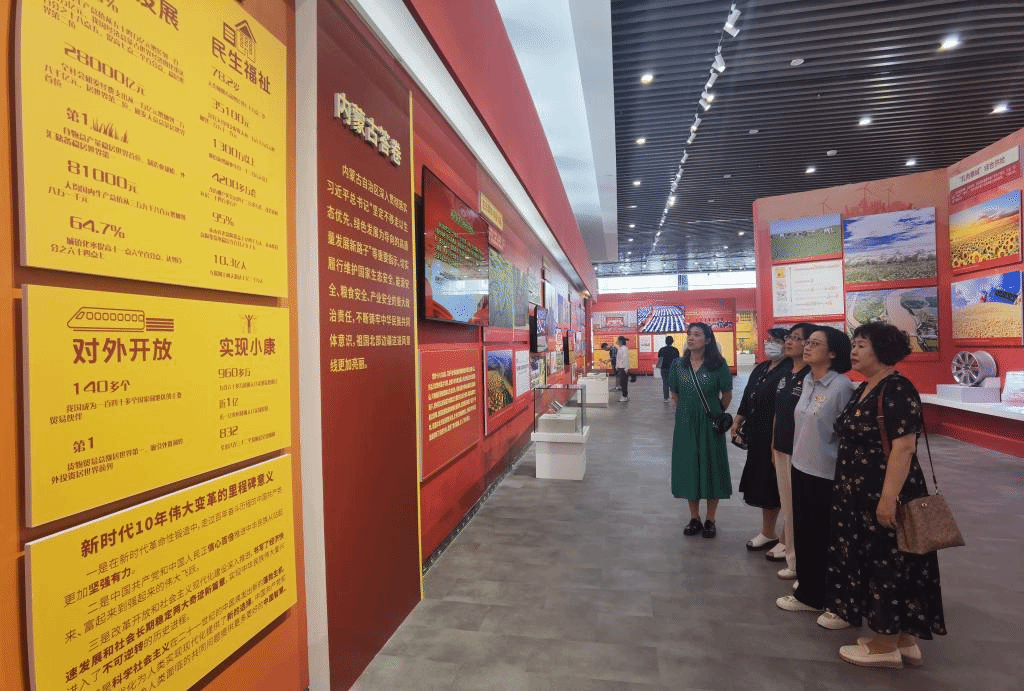 之后,在讲解员的带领下全体成员又参观学习了“亮丽内蒙古 奋进新征程——学习宣传贯彻党的二十大精神”主题展,该主题展由“新时代伟大成就”“高举伟大旗帜”“书写新的篇章”三个主题单元构成。展览中大量丰富详实的图片图表、展品模型等展览要素,为大家直观、形象、生动地解读了党的二十大精神,展现了内蒙古新时代10年的伟大变革,全面呈现了在习近平总书记的亲切关怀和党中央的坚强领导下内蒙古10年来各项事业取得的丰硕成果,以及内蒙古全面贯彻落实党的二十大精神的具体举措和实际行动。