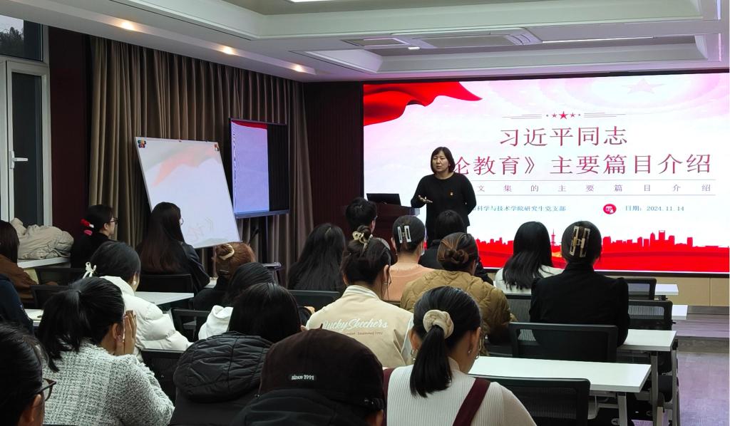 教育乃国家强盛、民族振兴之基石。为深入贯彻党的教育方针,全面学习领会习近平总书记关于教育的重要论述,进一步加强支部党员自我教育意识,beat365官网研究生党支部于11月14日组织开展了《论教育》专题党课学习活动,本次党课由研究生党支部书记默原老师主讲。