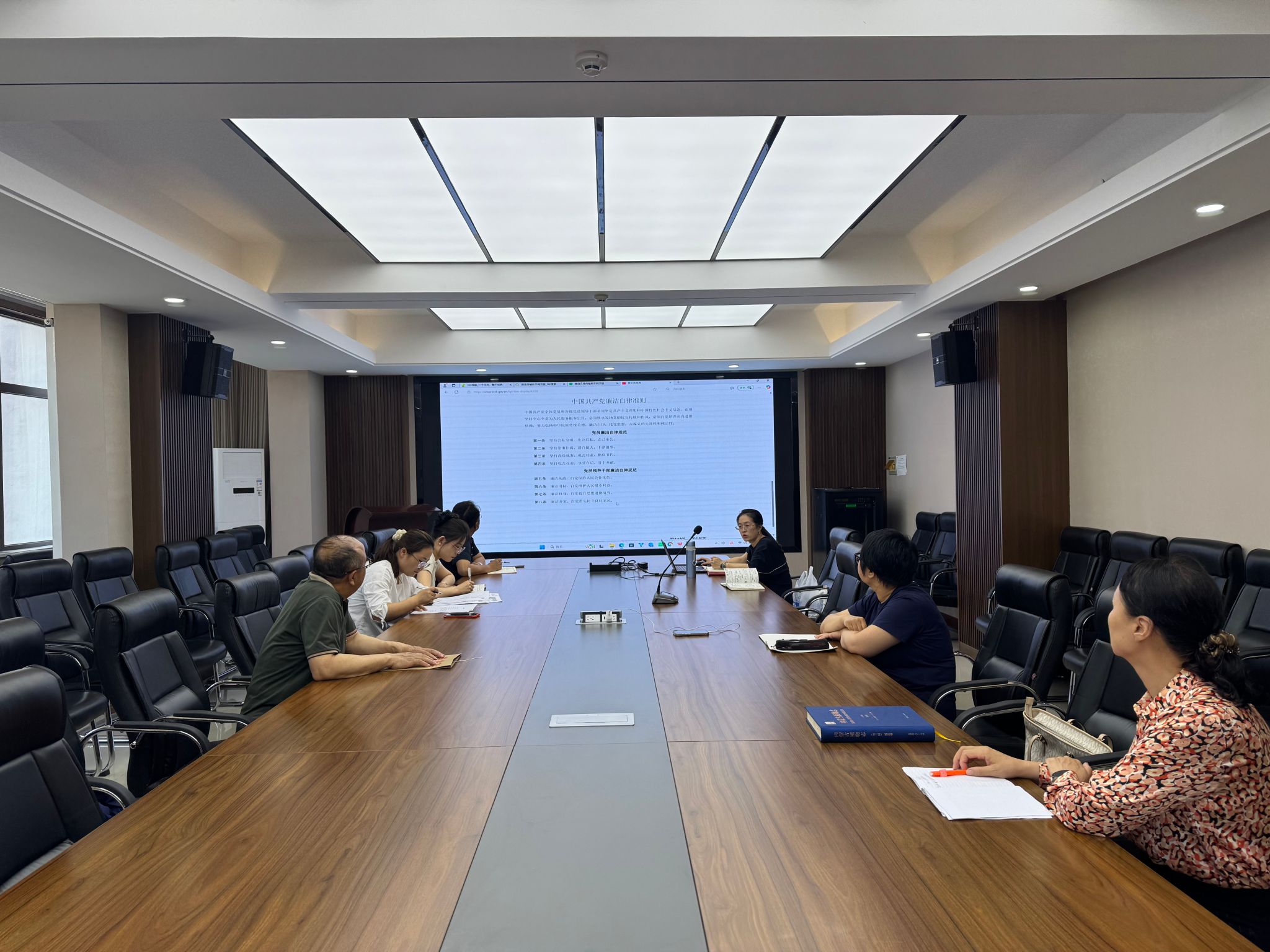 活动伊始,全体党员肃立齐声重温入党誓词,在铿锵誓言中追忆初心使命、坚定理想信念。随后,大家集体学习了中共中央印发的《中国共产党廉洁自律准则》,深入领会党员干部在道德、纪律、作风等方面的基本规范。会上还集中观看了廉政教育专题片《反腐为了人民》第一集《惩治蝇贪蚁腐》,通过多个基层腐败典型案例,深刻警醒党员要防微杜渐、守住底线、不碰红线。