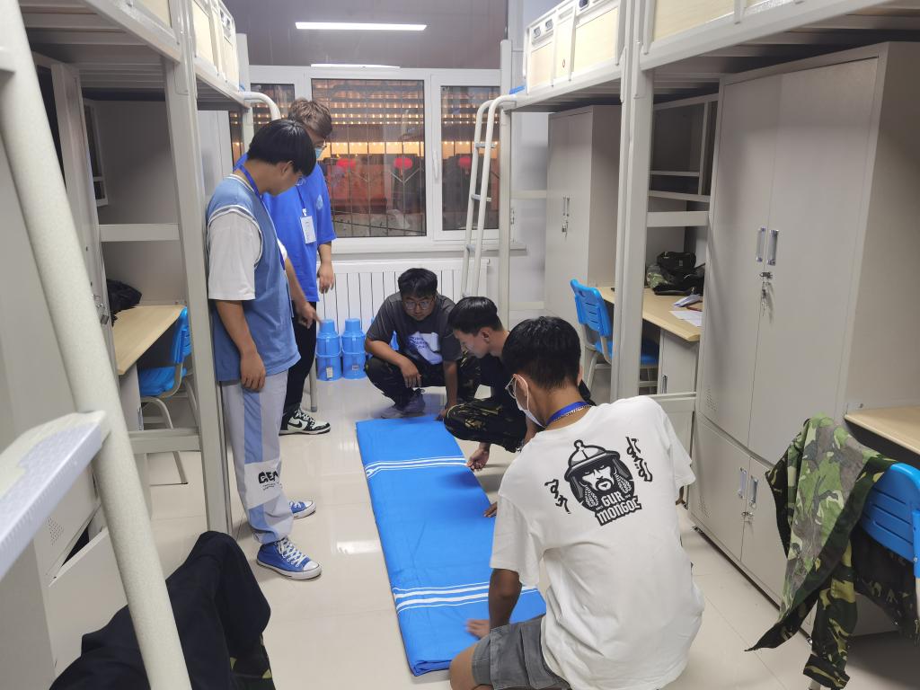 9月8日下午,院学生会各部门积极配合,在beat365唯一官方网站2022级本科新生军训期间开展了新生内务标准样板间展示活动,旨在加强学生内务水平、规范军事化要求,帮助新生养成良好生活习惯,提升内务水平。活动期间,学生会部门负责人指导各个生班班级负责人参照军队的标准,对宿舍门窗地面整洁、物品摆放规范、被褥叠放平整、整体环境卫生四个部分提出了严格要求并指出了在细节整理方面的注意事项。本次活动在培养新生动手能力,强化个人素养的同时营造良好的军队氛围,为新生们尽早适应军事化管理奠定了基础。活动过程中,学生会指导人员抓紧时间,强调细节,在进行现场示范的同时指导新生进行实践操作。